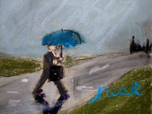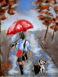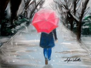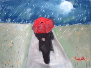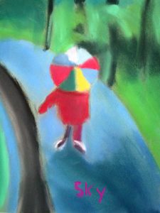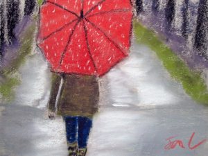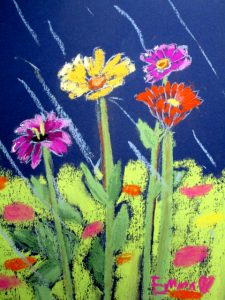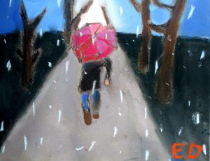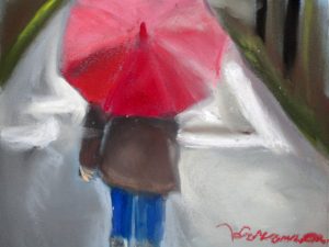 We often create works that are informed by the time of year, so last week we did April Showers, focusing on rain, atmosphere, and how to make things look wet. The artists did a great job. We’ll be off for April vacation, and back at it getting ready for our Annual Student Show and Auction that open May 18, 5-7:00 at Bramhall’s Country Store. An email update about that is forthcoming.