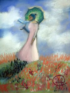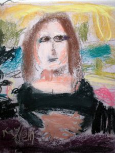 This is the underpainting for my Mona. I have learned so much about these paintings – yes there is more than one Mona, and the one in the Louvre is actually three paintings with a thousand layers of paint. The coolest thing I learned is that Leonardo used this painting for teaching over a number of years, and the title Mona Lisa only happened after his death. Originally, the painting was called La Gioconda, as her name was Lisa del Giocondo, but even cooler is that Gioconda means delight or light-hearted, and the absolute lightest value on the painting is over her heart. I’ll name my Mona self portrait Light-Hearted.