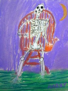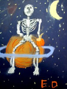 Bone Jones emerges from the cellar once a year to kick off the Halloween season while offering a lesson that is the foundation of figure drawing. This week, I’ll be posing to give the kids a taste of real live figure drawing. 🙂