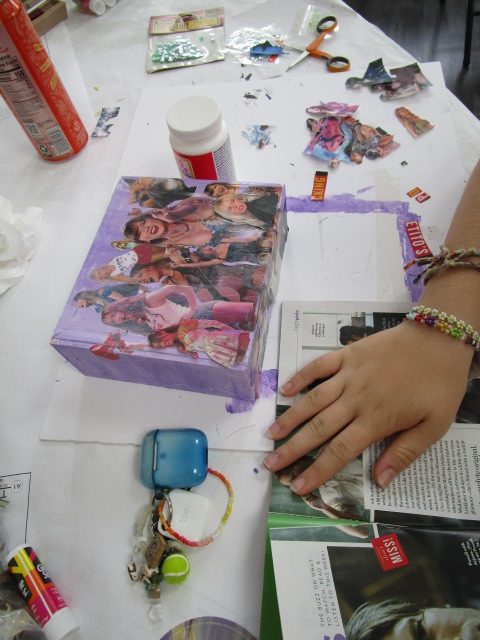 Remind kids who are coming to summer sessions to gather up stuff they’d like to use on/in their cigar boxes. These unique creations are made even more special when kids plan ahead and find objects, pictures, decorations, etc. that make their boxes their very own. Of course, I have a bunch of stuff, but having the kids include their own finds makes for a better creative experience. There are still a few spots in sessions 3 and 4 if anyone wants to join.