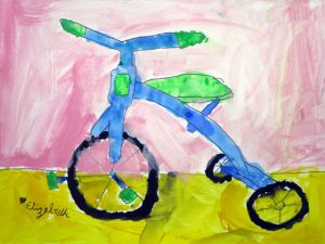 This week we’ll do acrylic paintings of the trike. Enjoy last week’s awesome trike pastels and watercolors, and scroll down for the class schedule.