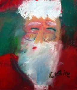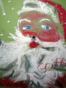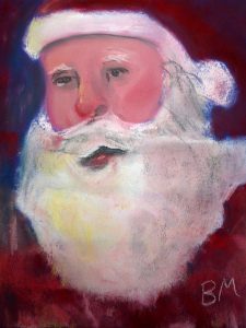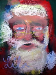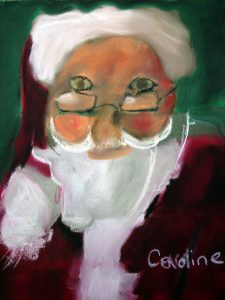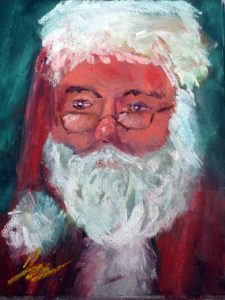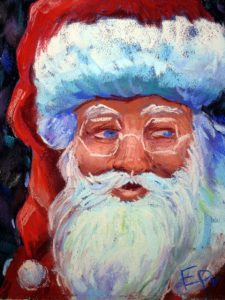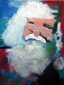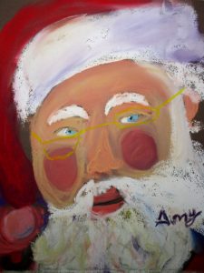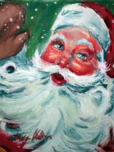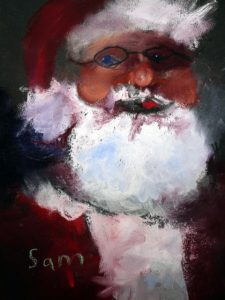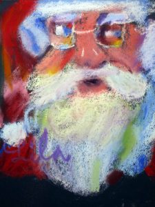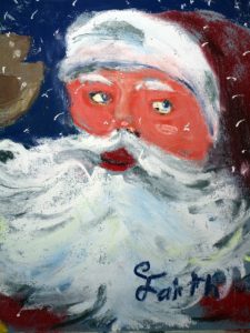 This year I had to find a whole new posse of Santas for Upside-down Santa since many of the long haulers had done most of the preferred Santas I had on file. It’s a great exercise to get artists to let go of preconceived notions and paint what they actually see. Contour and upside-down drawing are fundamental to any art practice. Do it at home too!