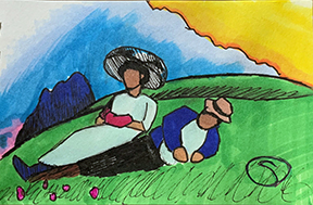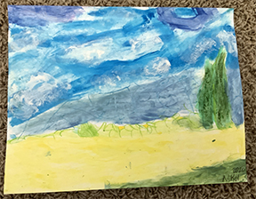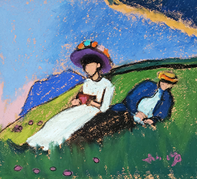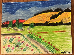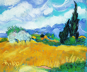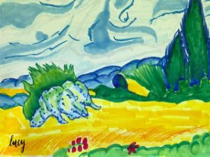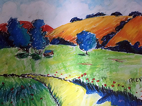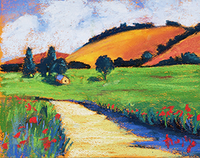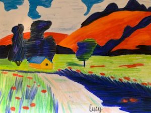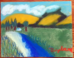 This week we’ll be channeling Georgia O’Keeffe and painting close up flowers from my garden. Enjoy these landscape artworks from last week, and scroll down for the Zoom Schedule and reference pix.