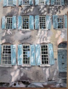 Megan and I donated to the community art collaborative and those hexes will be at the Stephen’s Field installation. Sarah took many weeks to create the painting below of a building in Charleston, SC she saw during April vacation. Gorgeous work!