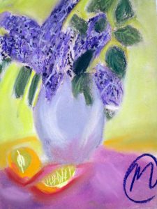 When the lilacs bloom, we do lilacs! Enjoy these beautiful artworks, and scroll down for the class schedule.