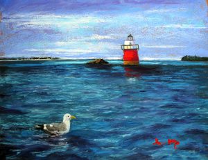 I made this painting for Bug Light’s 150th birthday fundraiser September 18 at PYC.
