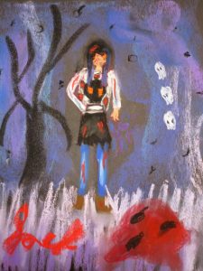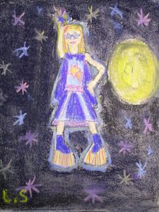 Kids used all of the stuff they learned over the past few weeks about figures to create their own super hero action figures. First they had to define their super power and develop their character, then they made their paintings.