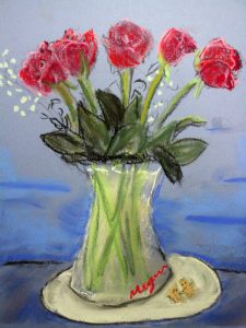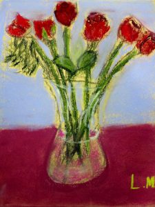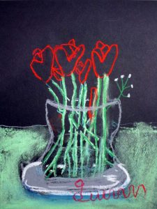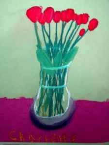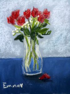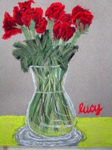 I have an art job with a deadline so must put my nose to the grindstone over the school vacation. We did roses for valentine week. I just love how the same vase of roses resulted in sixteen unique artworks. 🙂 Enjoy these lovely valentine roses, and scroll down for the CLASS SCHEDULE.