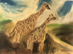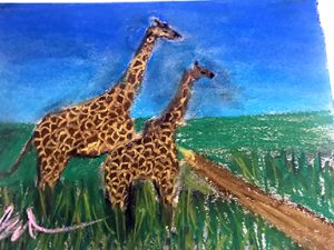 We actually have a lot more students, but I can’t post their artworks unless someone sends them to me. Enjoy these exotic animals, and scroll down for the Weekly Zoom Class Schedule.
